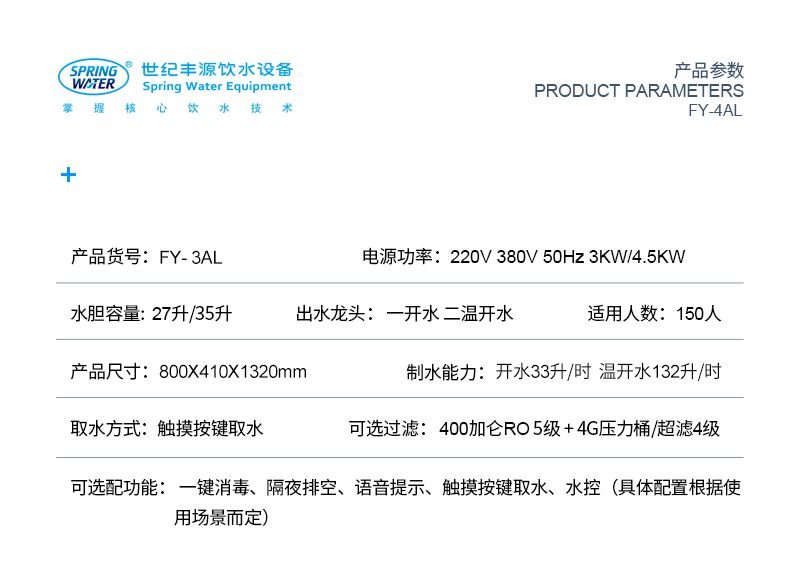 相關標簽:反滲透水處理 100人用開水溫開水觸摸型節能飲水機、、型號:FY-3AL