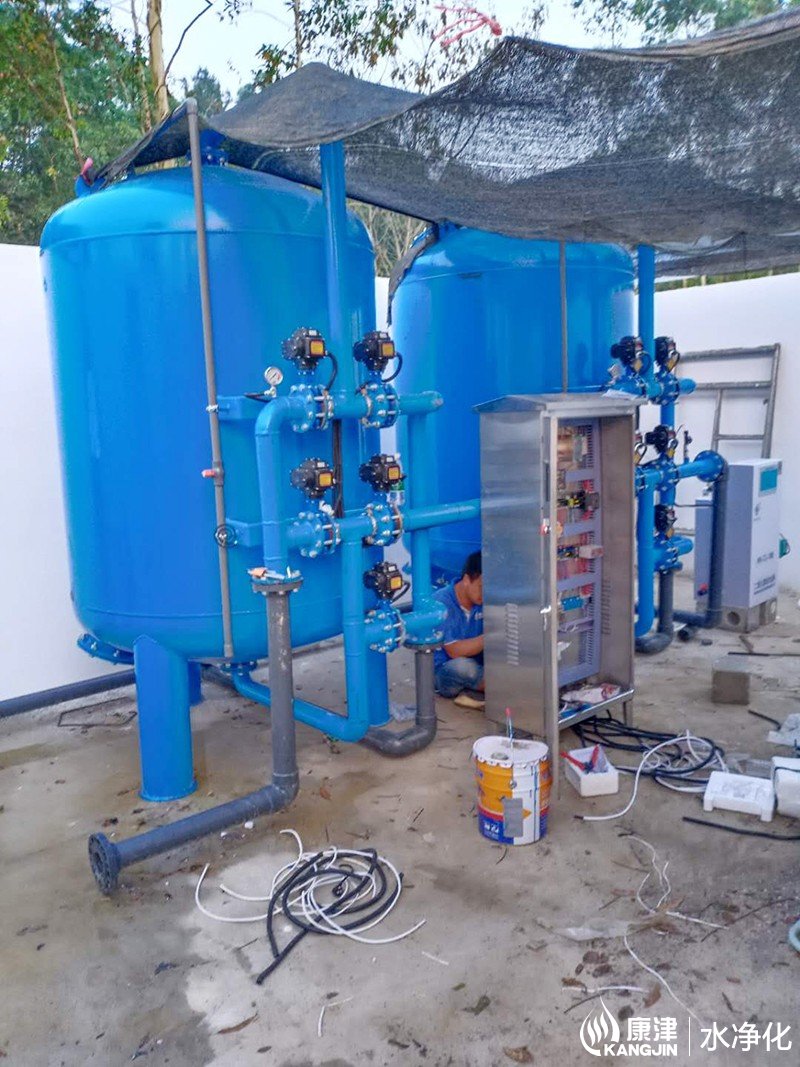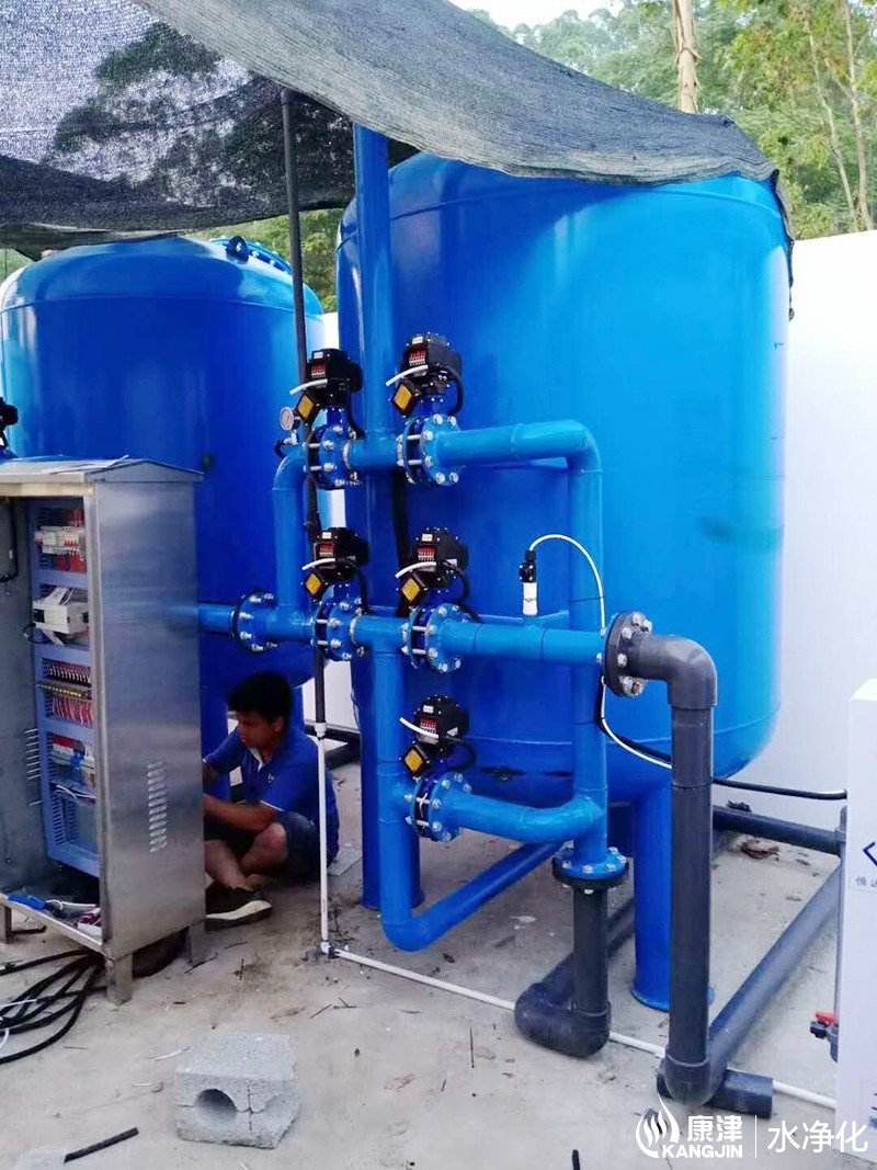 設備是壓力式的,其原理是當原水自上而下通過濾料時,水中懸浮物由于吸附和機械阻流作用被濾層表面截留下來;當水流進濾層中間時,由于濾料層中的砂粒排列的更緊密,使水中微粒有更多的機會與砂粒碰撞,于是水中凝絮物、懸浮物和砂粒表面相互粘附,水中雜質截留在濾料層中,從而得到澄清的水質。經(jīng)過濾后的出水懸浮物可在3毫克/升以下。