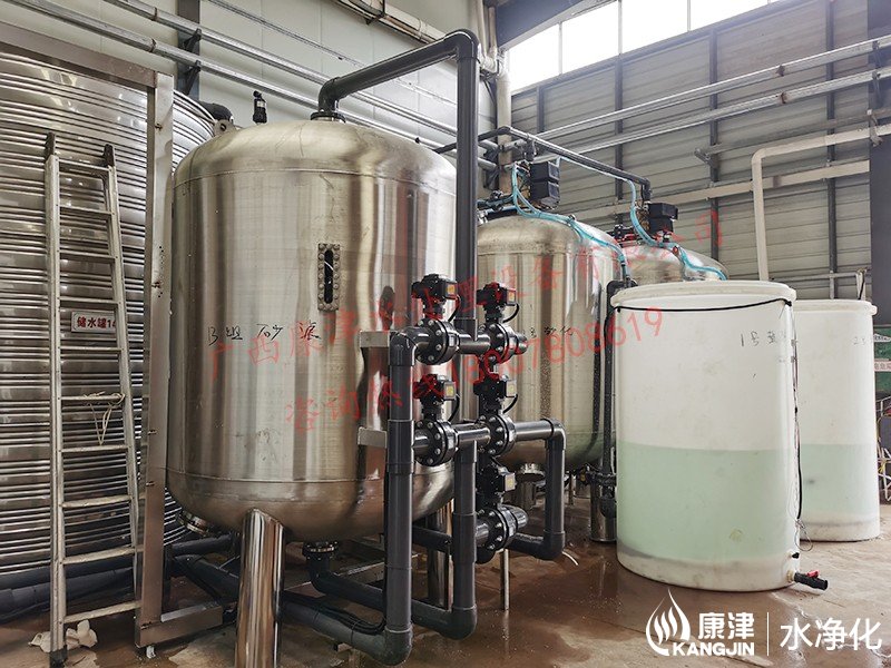 工藝流程:井水-原水箱-錳砂過濾器-石英砂過濾器-活性炭過濾器-軟化水-凈水箱
