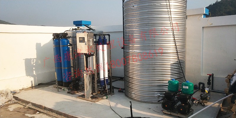 項目名稱:百色田林光伏發電站2噸超濾凈水設備工程 設備名稱:2噸超濾凈水設備 工藝流程:山泉水-原水箱-原水泵-石英砂過濾器-活性炭過濾器-精密過濾器-超濾設備-紫外線殺菌-變頻水泵-凈水箱...