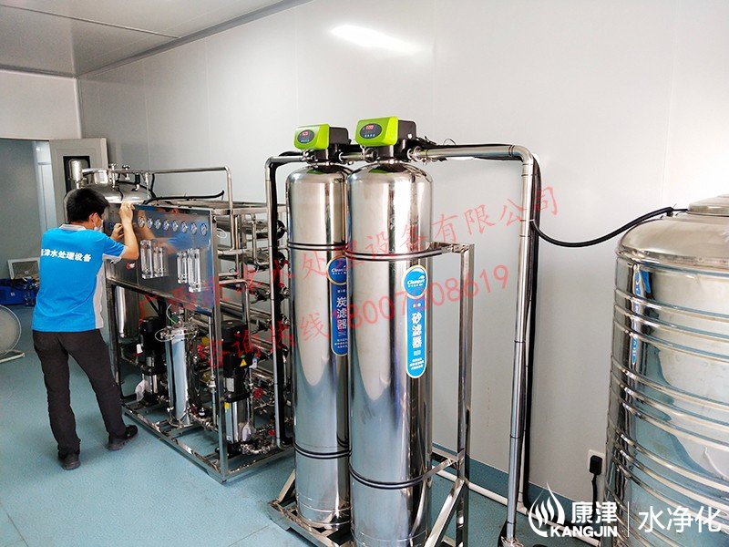 工藝流程:原水箱-原水泵-石英砂過濾器-活性炭過濾器-精密過濾器-雙極反滲透-凈水箱-變頻供水-各點用水