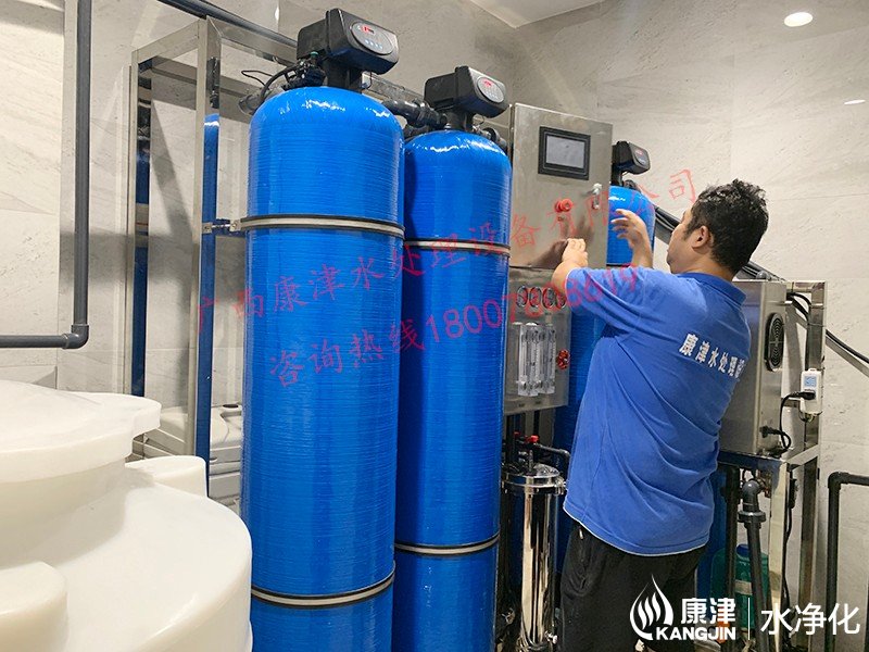工藝流程:原水箱-原水泵-石英砂過濾器-活性炭過濾器-樹脂過濾器-精密過濾器-反滲透設備-軟水鹽-凈水箱-變頻供水回水殺菌系統(tǒng)-用水點