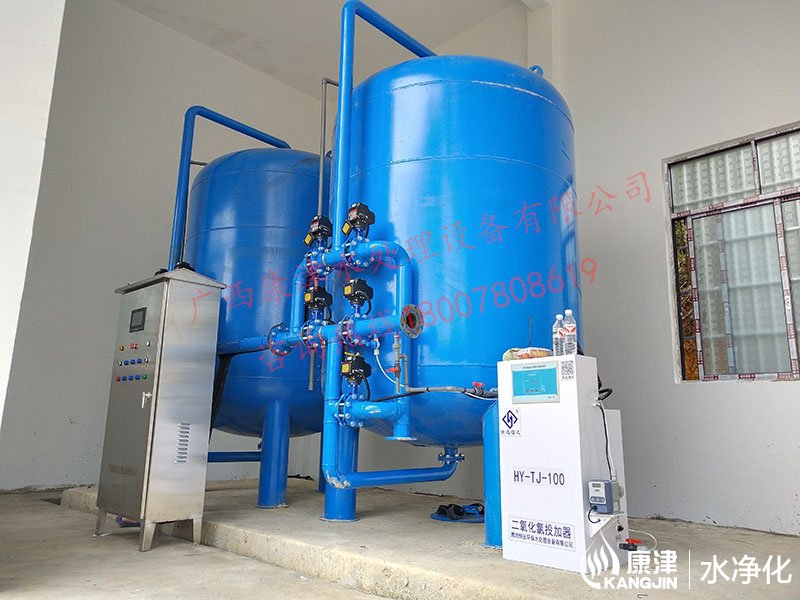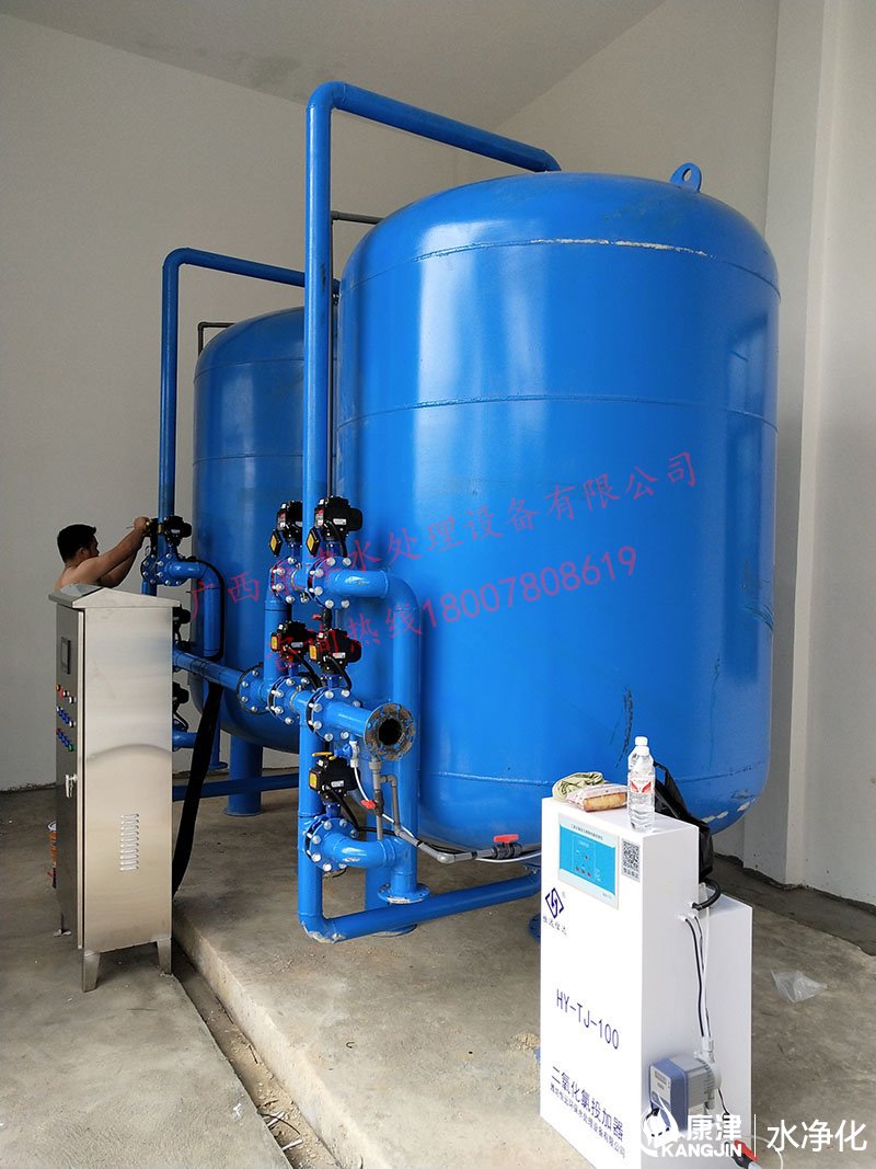 工藝流程:河水-石英砂過(guò)濾器(二級(jí)過(guò)濾)-二氧化氯消毒