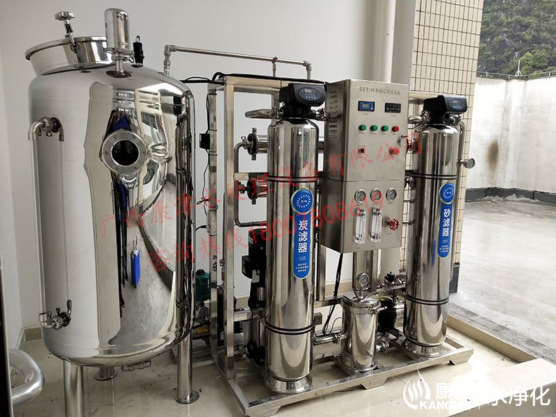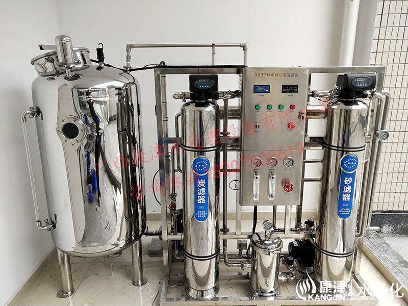 工藝流程:石英砂過濾器-活性炭過濾器-精密過濾器-加藥-高壓泵-反滲透膜組-無菌水箱-變頻恒壓供水系統