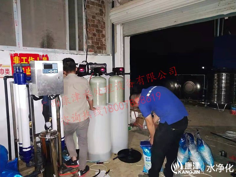 工藝流程:井水-原水箱-石英砂過濾器-活性炭過濾器-超濾-軟化水-凈水箱