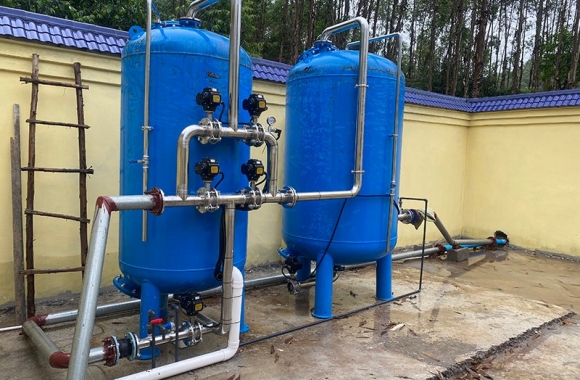 項目名稱:農村飲水安全鞏固提升工程 設備名稱:貴港市三六村10噸壓力式一體化凈水設備 工藝流程:河水-絮凝加藥-沉淀過濾器-石英砂過濾器-二氧化氯消毒...