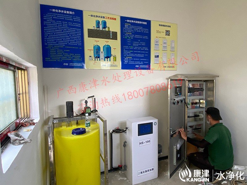 工藝流程:河水-絮凝加藥-沉淀過濾器-石英砂過濾器-二氧化氯消毒