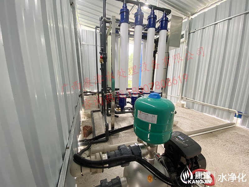 工藝流程:地下水-原水箱-原水泵-石英砂過濾器-活性炭過濾器-精密過濾器-超濾設備-凈水箱