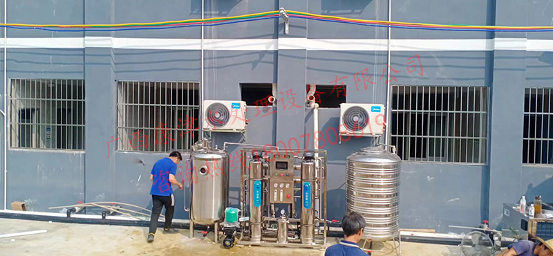 項目名稱:百色平果某學校0.5噸反滲透直飲水設備 設備名稱:0.5噸反滲透純水設備 工藝流程:原水箱-原水泵-石英砂過濾器-活性炭過濾器-精密過濾器-高壓泵-反滲透膜組-無菌水箱...
