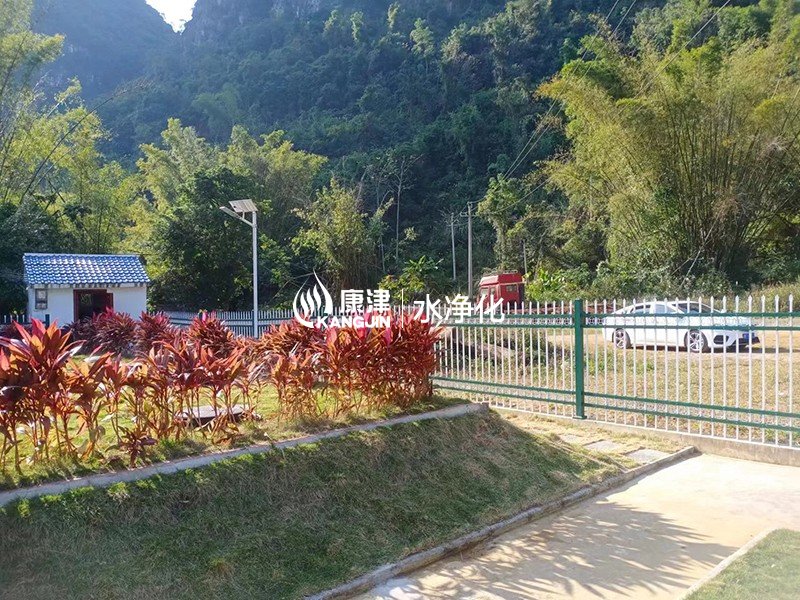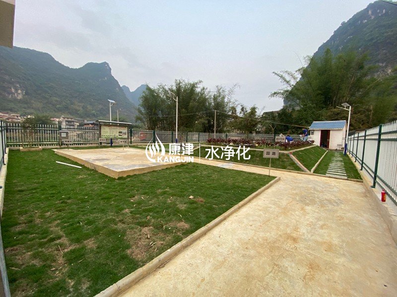 工藝說明:村屯生活污水經過收集管網后先經過格柵,攔截大顆粒漂浮物、懸浮物,然后自流到調節池,再經提升泵進入組合式固定床設備,在組合式固定床設備中經過缺氧區、好氧區等多級反應區處理,接著進入沉淀池進行污泥沉淀,一部分污泥回流前部缺氧區,剩余污泥排至污泥池。沉淀池出水流入人工濕地,在此污水中的有機污染物通過人工濕地的生物氧化、吸附、降解。人工濕地出水經出水井外排至附近池塘下游。最后達標排放。調節池、污泥池前格為污泥硝化區,污泥硝化區內的污泥通過厭氧消化后定期采用吸糞車抽吸外運堆肥處理。