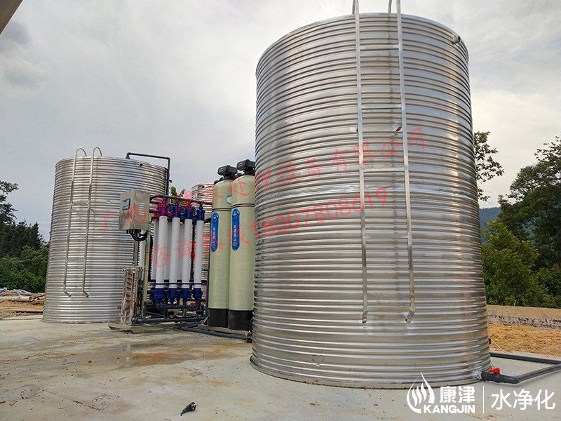 工藝流程:井水-原水箱-原水泵-石英砂過濾器-活性炭過濾器-精密過濾器-超濾設備-凈水箱
