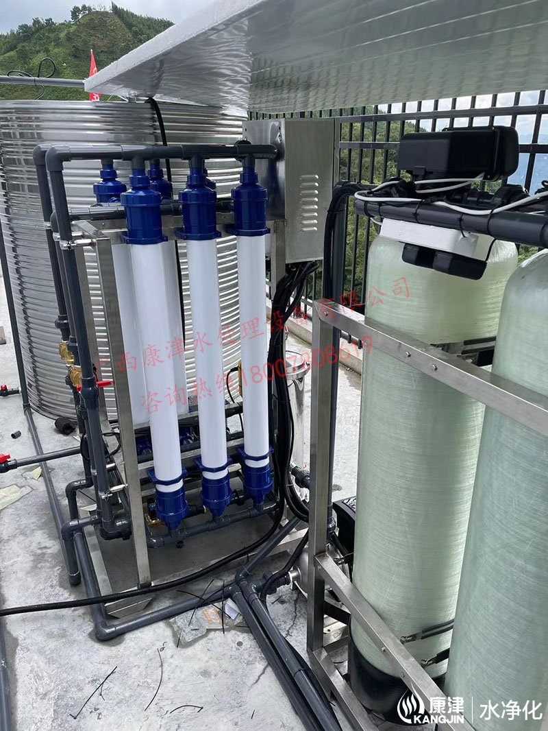 工藝流程:地下水-原水箱-原水泵-石英砂過濾器-活性炭過濾器-精密過濾器-超濾設備-凈水箱